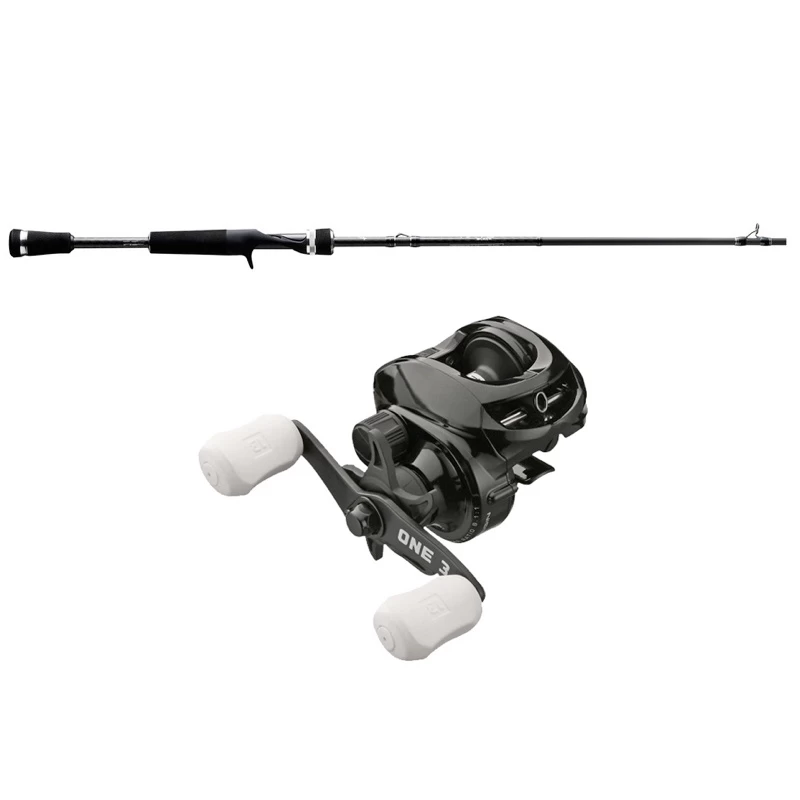 13 Fishing baitcast combo, deze speciale set is van de hoogste klasse, met de populaire Fate Black hengel in Medium light of Medium actie en een Origin A low profile reel.